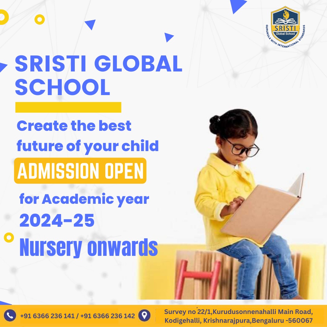 Shape a brilliant future for your child at Sristi Global School! 🌟✨ Admission now open for the Academic year 2024-25, from Nursery onwards.📚🎓